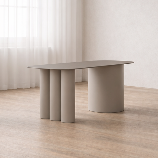 Una serie de mesas que interpreta el brutalismo contemporáneo desde líneas suaves y proporciones precisas. Cilindros y planos curvos construyen una identidad sólida, donde la robustez se equilibra con una ligereza visual pensada para los espacios actuales. Diseños firmes, silenciosos y con presencia.